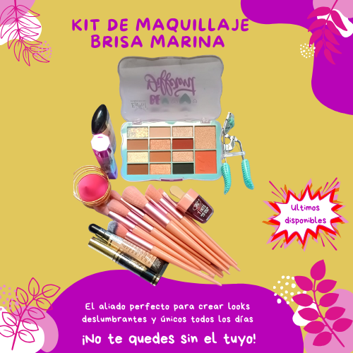 El kit de maquillaje Brisa Marina es el aliado perfecto para lograr looks deslumbrantes en cualquier ocasión. Incluye sombras, base, labial, brochas profesionales, pestañina, delineador y encrespador, todo en un set compacto y económico.